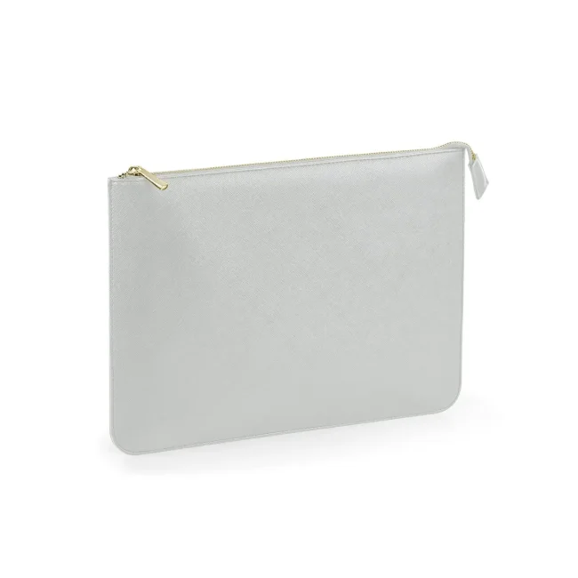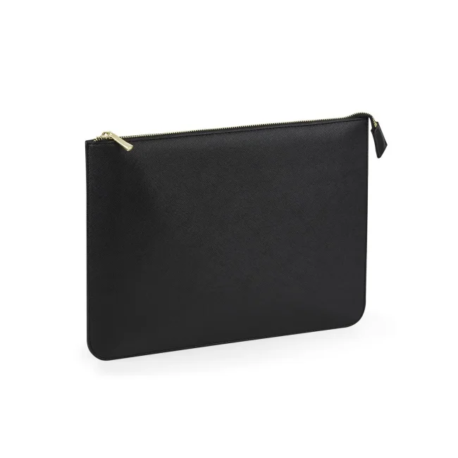 100% poliuretano effetto pelle. Portadocumenti in saffiano grana fine, multiuso, rivestimento morbido al tatto, cerniera in metallo dorato lucido, etichetta removibile, progettato per contenere comodamente documenti di dimensione A4. Dimensioni: 35 x 26 x 1 cm.