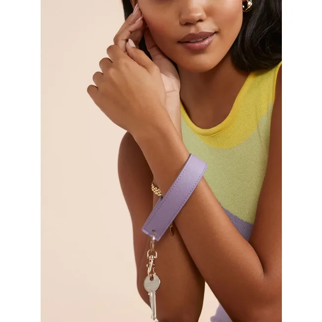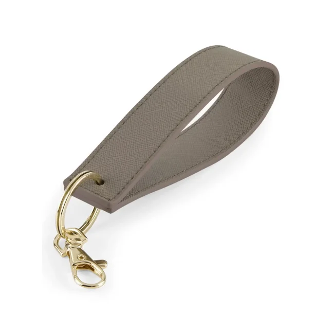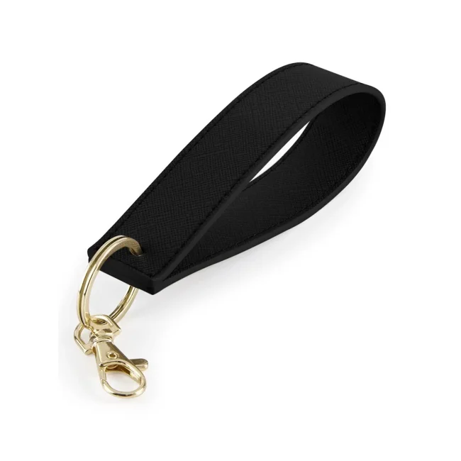 100% poliuretano effetto pelle. Portachiavi in saffiano a grana fine, moschettone in metallo lucido, cinturino da polso, progettato per la personalizzazione, compatibile con borse e accessori della Collezione Boutique. Dimensioni: 13 x 2,6 cm.