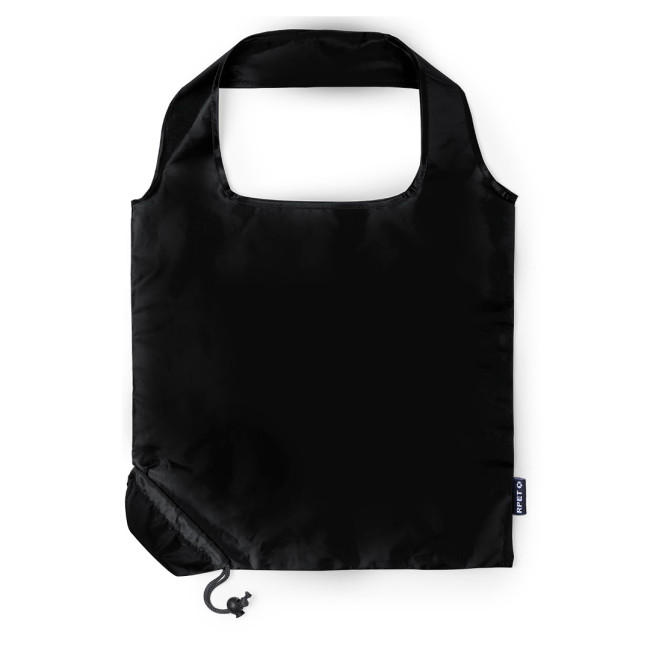 Borsa pieghevole in RPET 190T. Include accessorio di regolazione per facile piegatura e distintivo RPET. Con resistenza fino a 7 kg di peso.Il materiale RPET è realizzato con plastica riciclata, per promuovere il riutilizzo dei rifiuti plastici e contribuire alla sostenibilità del pianeta.