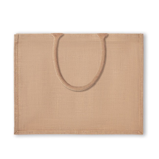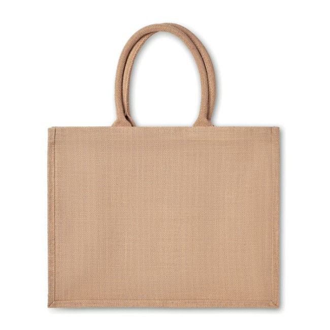 Shopper in juta con interno laminato trasparente, manici tubolari. Questo prodotto è certificato OEKO-TEX® STANDARD 100.