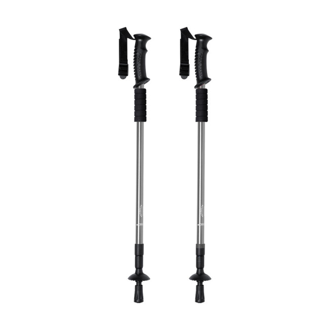 Set di bastoncini sportivi pieghevoli in alluminio resistente, con meccanismo di ammortizzazione e accessorio in morbida schiuma per appoggiare le mani. Con comoda impugnatura ergonomica, cinghia di sicurezza regolabile e accessorio da neve. Superficie di contatto del terreno rinforzata. Presentato in una borsa per il trasporto con tracolla. Canne disponibili in 3 colori.