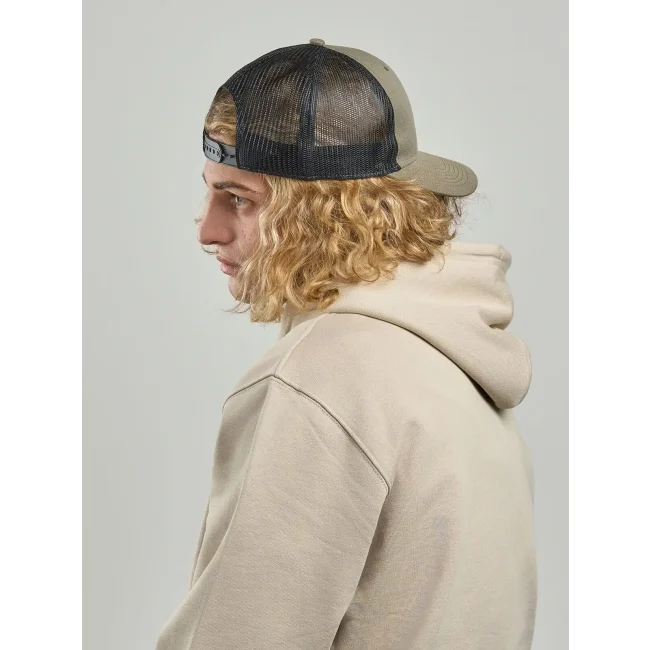 100% poliestere twill riciclato certificato. Cappellino trucker 6 pannelli con mesh e chiusura snapback. Ampia corona ideale per la personalizzazione, leggero, traspirante, etichetta removibile.