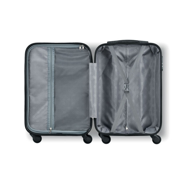 Trolley rigido 20 pollici in ABS. 1 comparto principale e uno interno. Lucchetto di sicurezza e 4 rotelle girevoli.