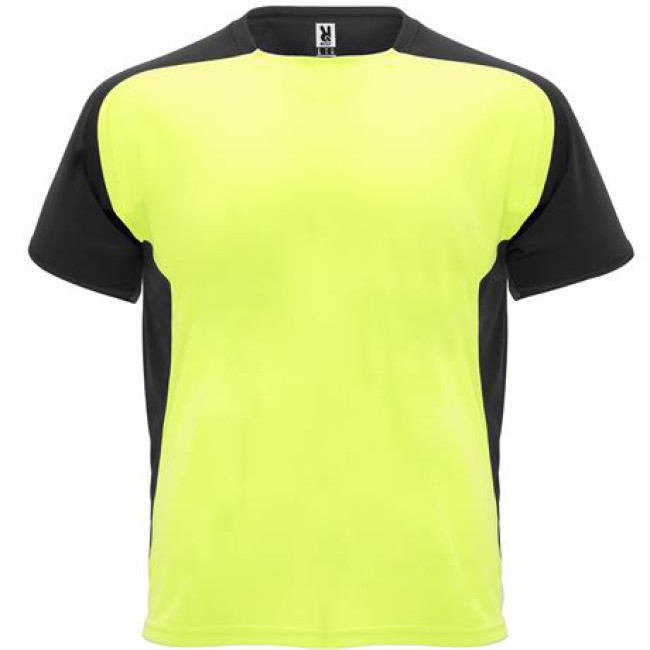 T-shirt tecnica manica corta raglan.1. Girocollo copri cuciture in tinta.2. Maniche e pannelli laterali in contrasto.