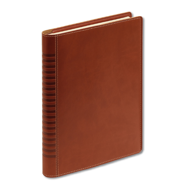 Grafica interna marrone. Copertina in bimateriale Canyon marrone e Vivella beige, stampa sul dorso e cuciture ecru