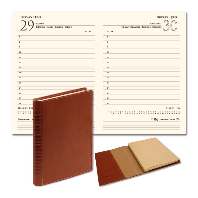 Agenda giornaliera a portafoglio con sabato e domenica separati.