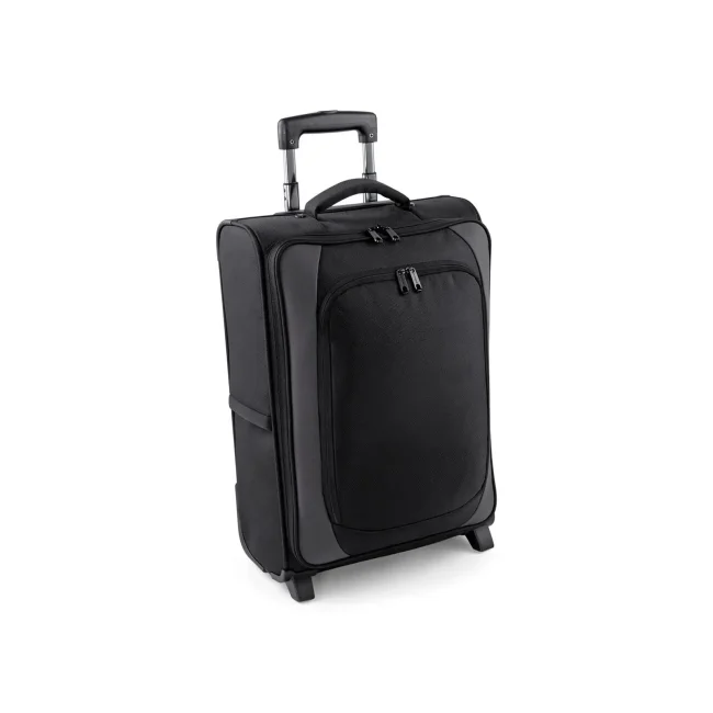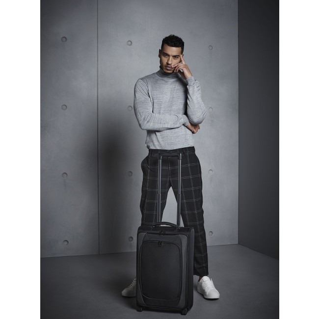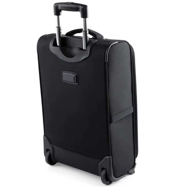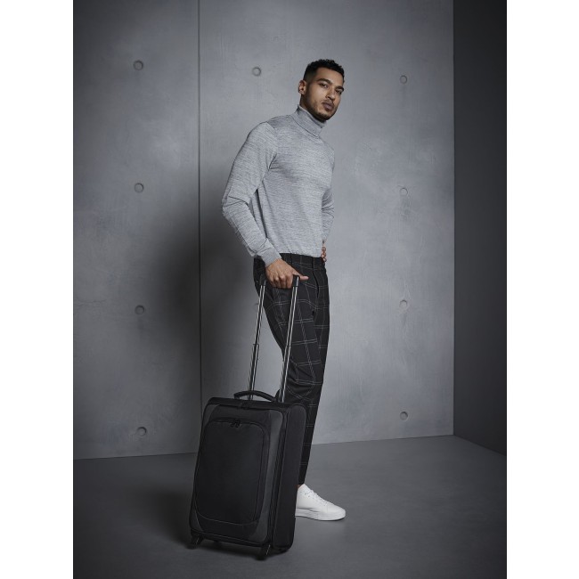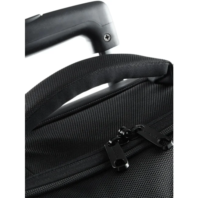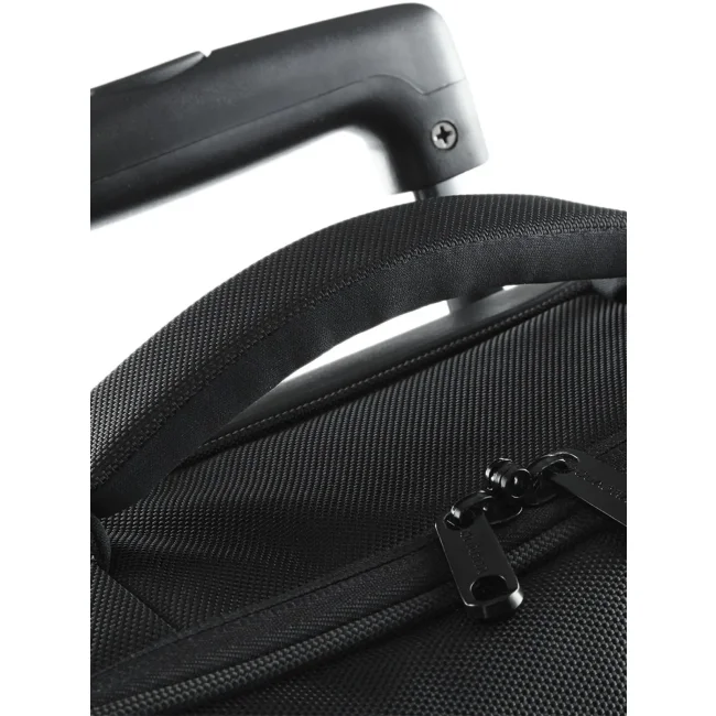 100% poliestere 1680D. Trolley dotato di manico da traino regolabile multi-posizione, compatibile con portatile fino a 15,6", tasca laterale con zip, chiusura a lucchetto del compartimento principale. Etichetta removibile.