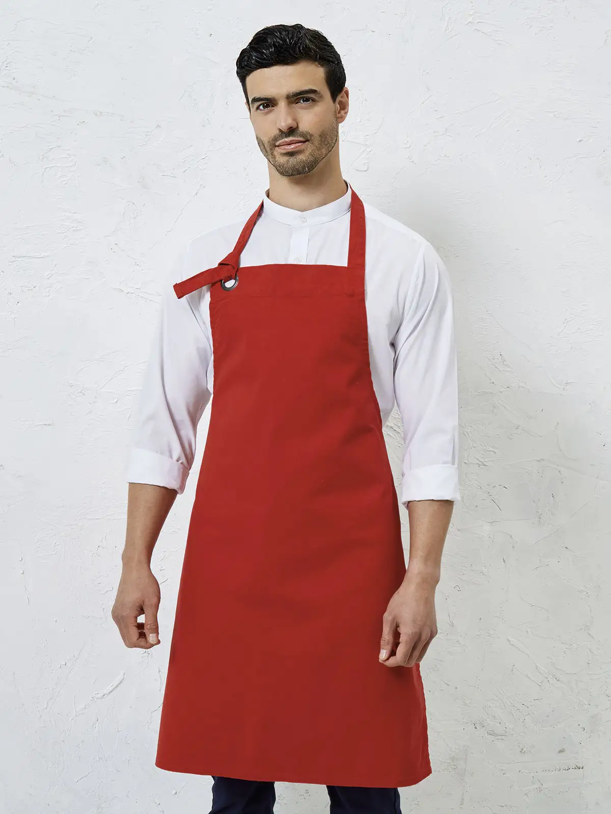 100% cotone canvas pesante. Grembiule dal tessuto morbido con tracolla cucita su un lato e passaggio sul lato opposto grazie a un occhiello. Puo' essere annodata per creare il girocollo su misura, allacciatura posteriore con lacci da 90 cm. Lavabile 60°C.