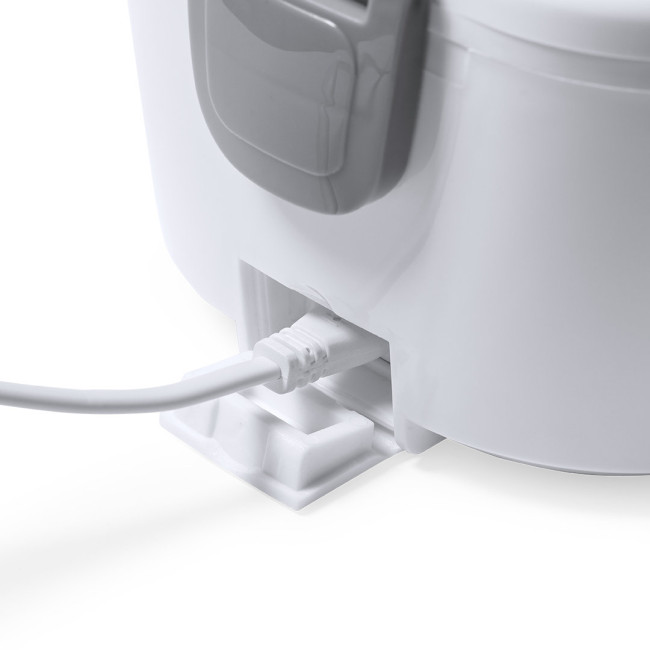 Cestino porta pranzo elettrico - capacità di 1l. Realizzato in resistente ABS senza BPA e con un design bicolore. Comprende una pratica maniglia per il trasporto e un coperchio ermetico con chiusure di sicurezza laterali. Dotato di 2 scomparti principali e uno scomparto aggiuntivo con chiusura ermetica. Cucchiaio inclus.Dptatp di cavo di alimentazione per la spina europea. Ideale per riscaldare il cibo in ufficio.Confezionato singolarmente in scatola di design.
