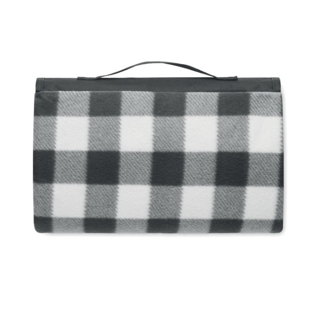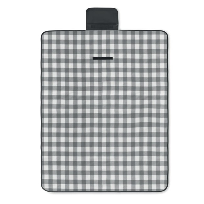 Coperta da picnic pieghevole in pile polare RPET 150 gr/m² con retro in PEVA rivestito resistente all'acqua. Include una tasca anteriore con cerniera e una cinghia di trasporto corta.