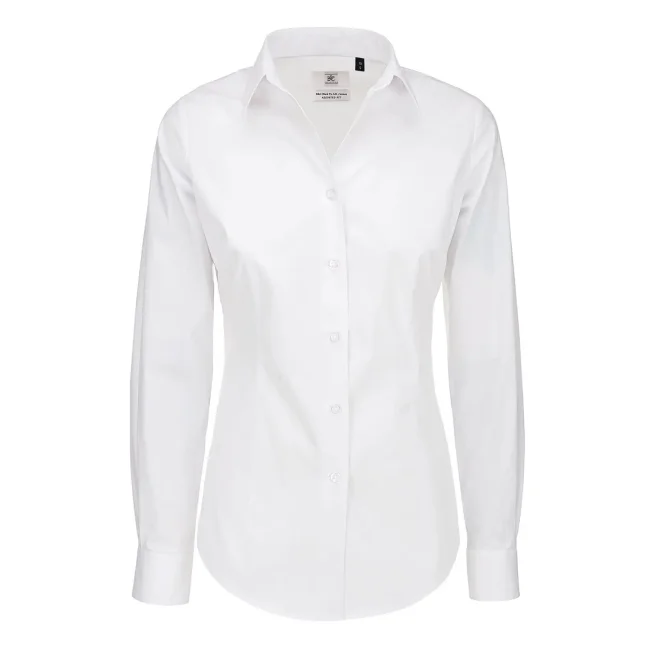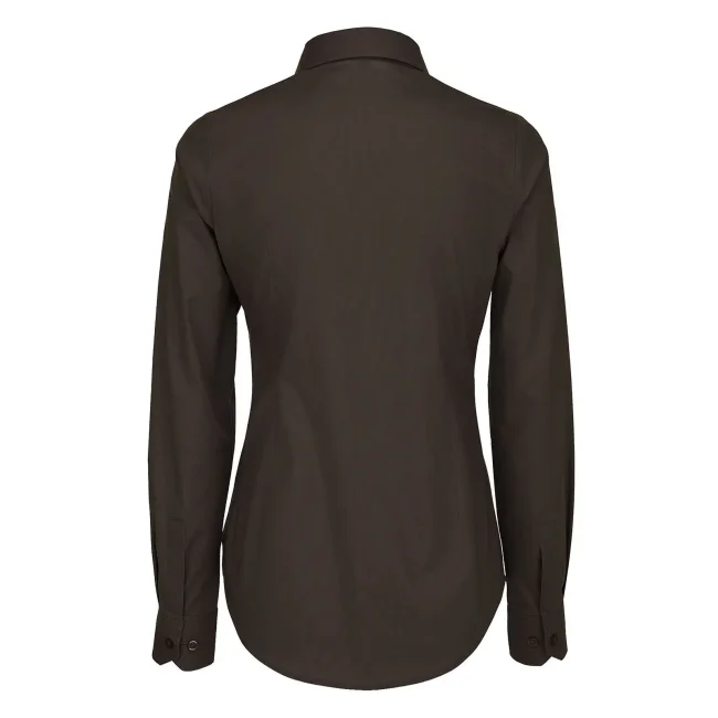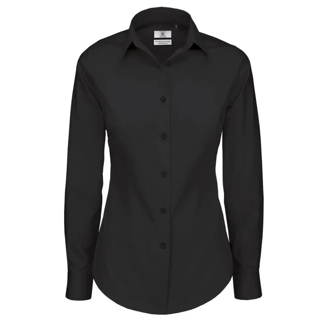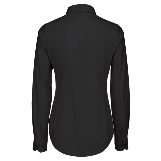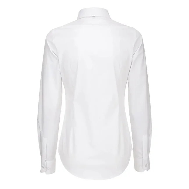 Camicia Black Tie LSL composta da 97% cotone pettinato e 3% elastane, presenta un taglio femminile leggermente sfiancato. I polsini con 2 bottoni e i bottoni tono su tono effetto madreperla con cucitura a croce aggiungono eleganza. Include un bottone di riserva. Lavabile a 50°C.