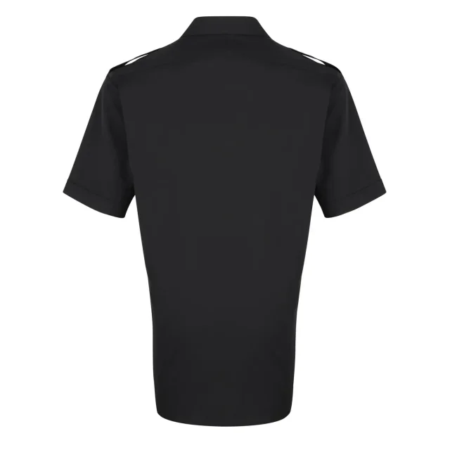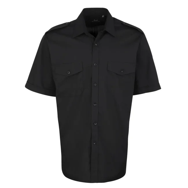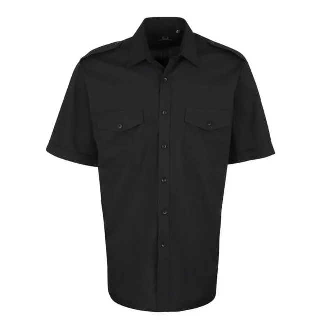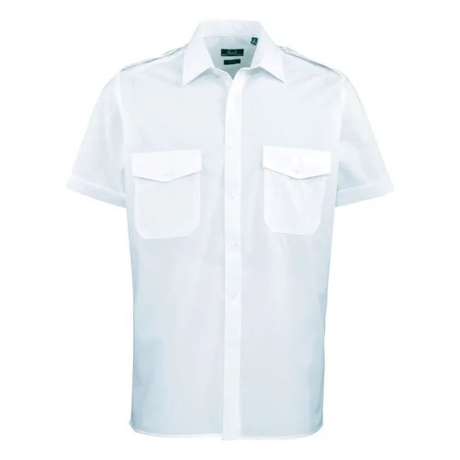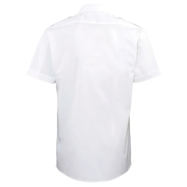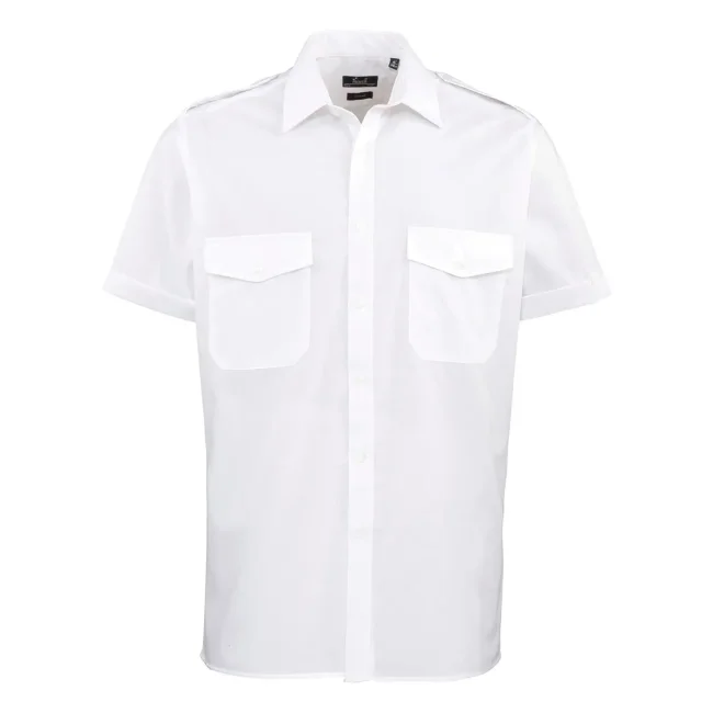 65% Poliestere, 35% Cotone Poplin. Per coloro che richiedono un'uniforme da lavoro più autorevole, questa camicia pilota da uomo a maniche corte è l'ideale in quanto presenta linguette sulle spalle che possono ospitare spalline e dispone anche di due tasche sul petto smussate.
