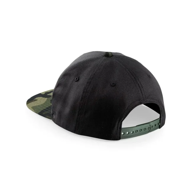 100% cotone twill. Dettagli camouflage, visiera piatta, regolazione con snap-tab. Etichetta strappabile.