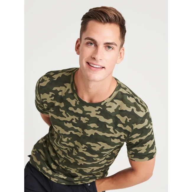 100% cotone. T-shirt manica corta, set-in, girocollo con costine, taglio moderno, superfice adatta a stampa e ricamo, struttura con cuciture laterali, doppie cuciture sulle maniche e sul bordo inferiore.