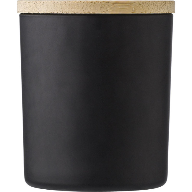 Candela in vetro con cera vegetale e coperchio in bambù, contiene principalmente cera di origine vegetale (cera di carnauba) e ha una durata di circa 46 ore. Quattro profumi a seconda del colore del vetro: cannella (rosso), vaniglia (bianco), legno di sandalo (nero) e gelsomino (verde), confezionata singolarmente in un tubo bianco