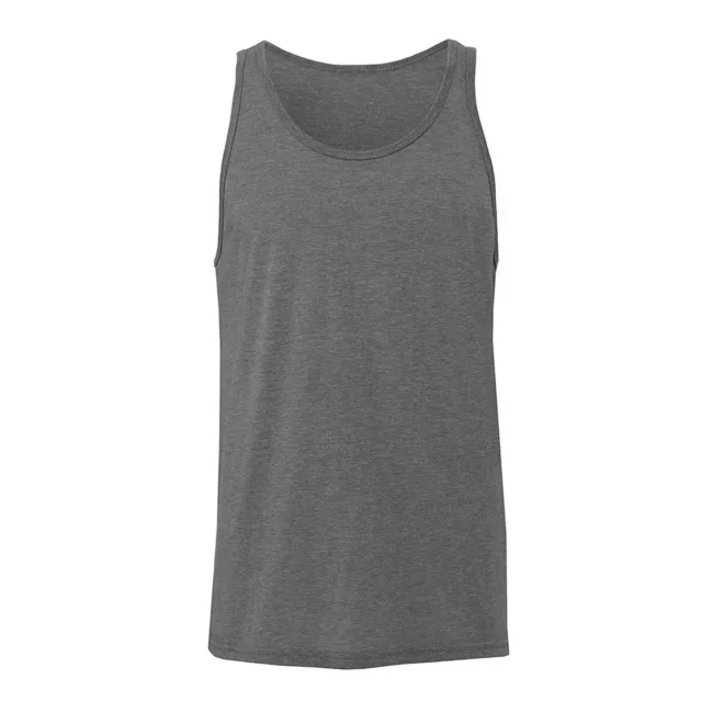 Canotta unisex in cotone ring-spun con girocollo profondo e struttura con cuciture laterali, offre una vestibilità moderna. Disponibile in diverse varianti di colore, tra cui Triblend e Black Heather. Ideale per personalizzazione e stampa, con un peso di 130 g/m² per i colori Triblend e una composizione di 90% cotone e 10% poliestere per il Black Heather.