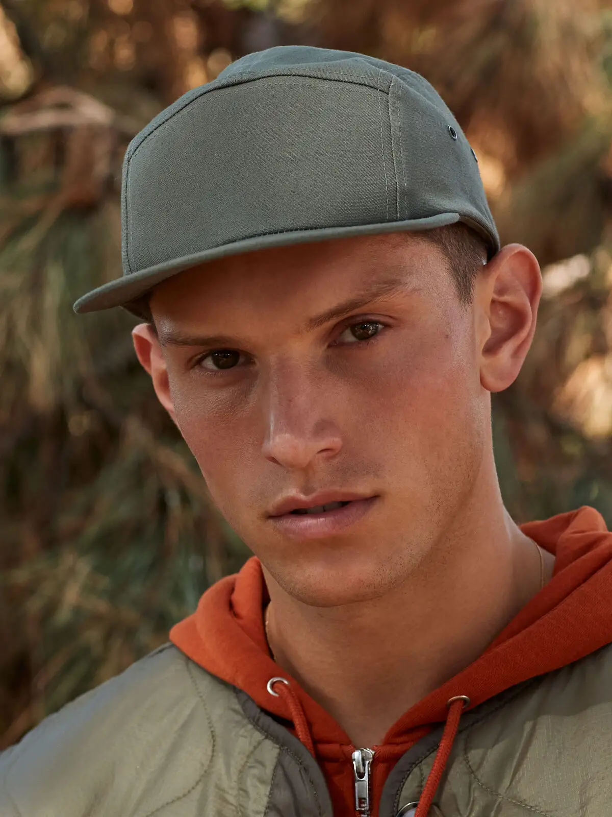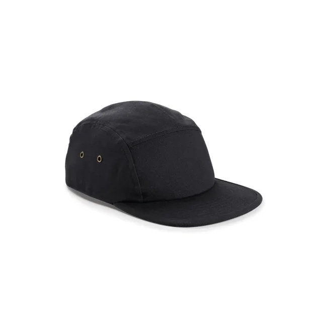 100% cotone canvas. Cappellino a 5 pannelli con visiera piatta, occhielli in metallo sul lato, etichetta rimovibile, regolazione taglia con fibbia con gancio a scatto, taglia unica.