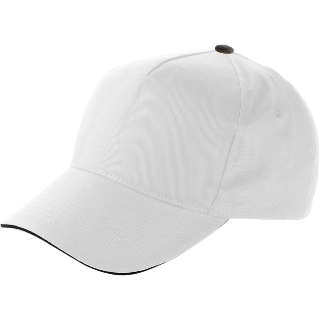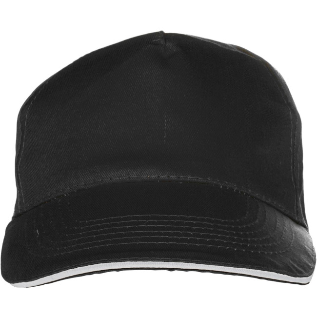 Cappellino sandwich con visiera, 5 pannelli, chiusura in velcro, 100% Cotone