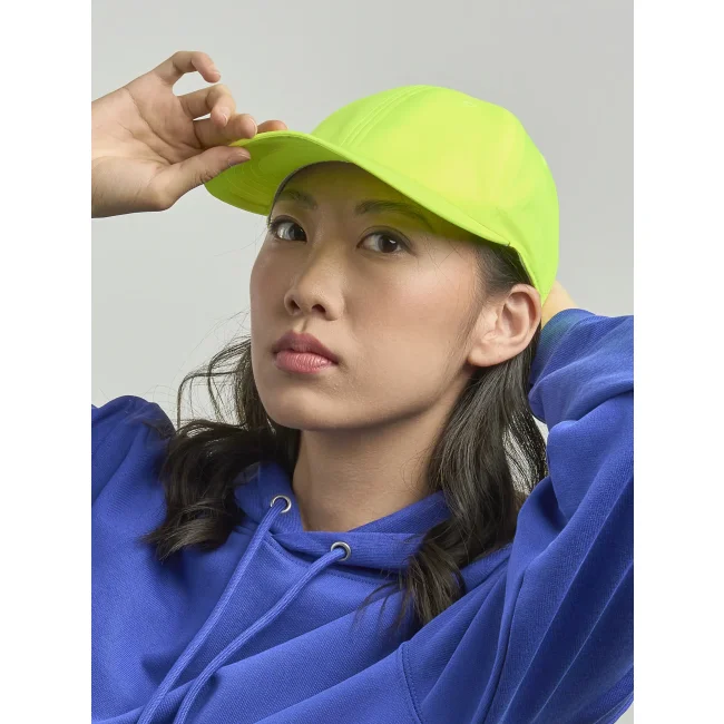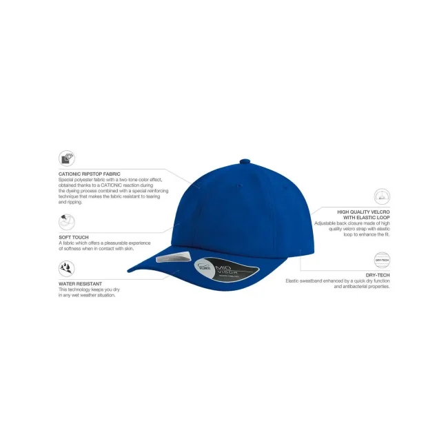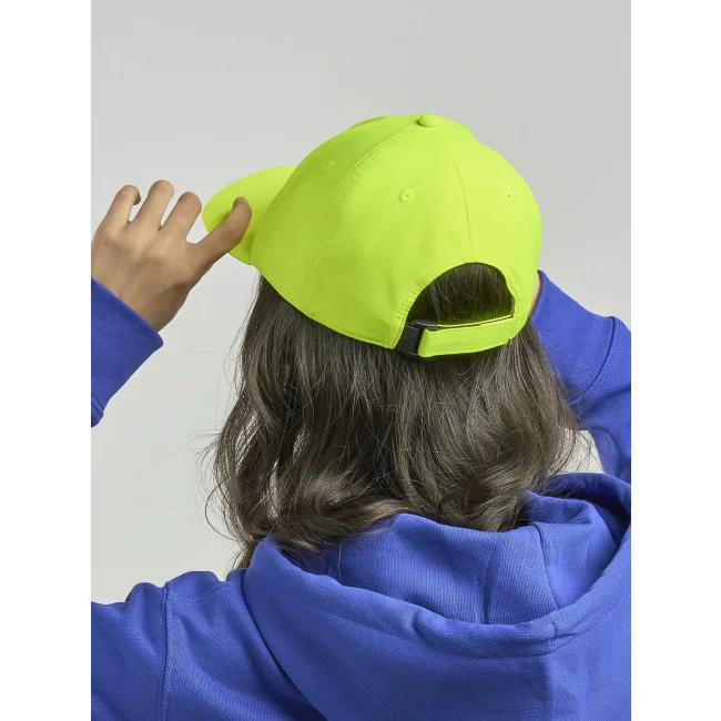 Cappellino Energy realizzato in 100% poliestere, presenta una struttura non strutturata a 6 pannelli con visiera precurvata. Dotato di occhielli ricamati e chiusura in velcro di alta qualità, offre un tessuto idrorepellente molto leggero e una fascia antisudore dry-tech per un comfort ottimale.
