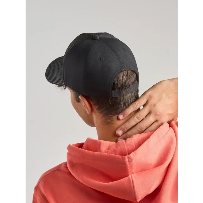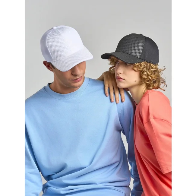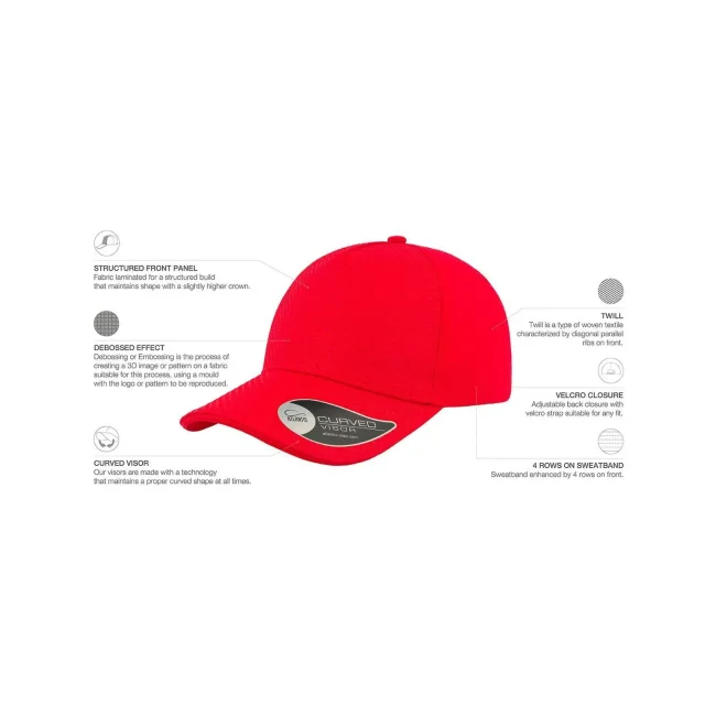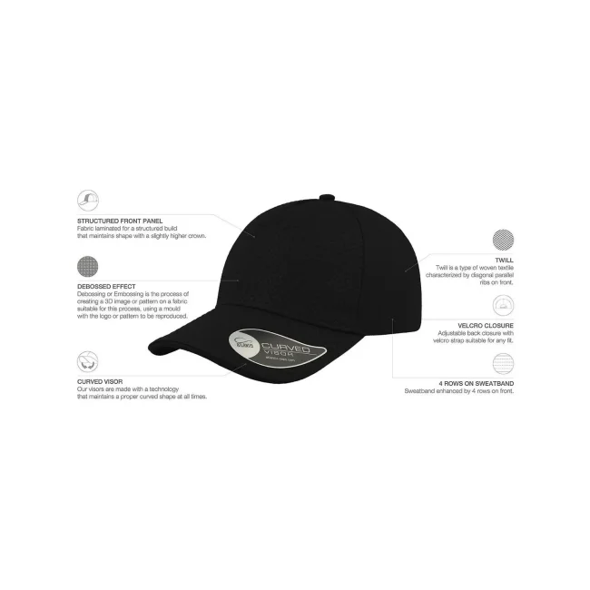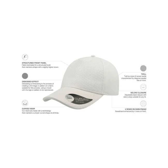 Cappellino Gear realizzato in cotone chino, dotato di 5 pannelli e visiera pre-curvata con sei cuciture. La chiusura in velcro e il parasudore in poliestere garantiscono comfort e praticità. Etichetta removibile per un look pulito.