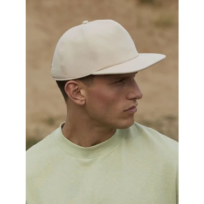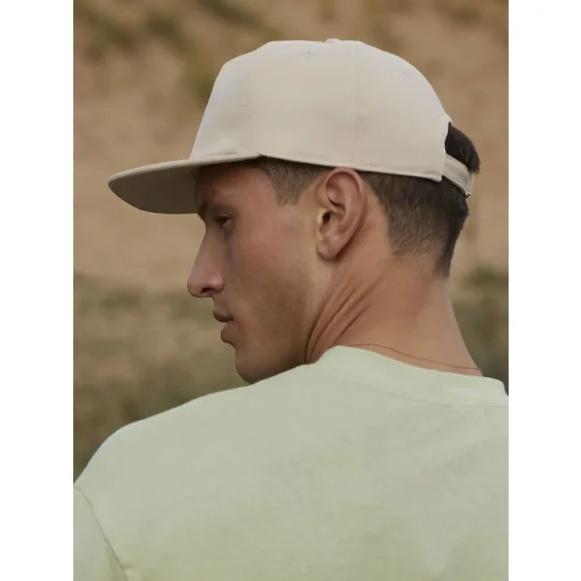 Cappellino Organic Cotton Unstructured 5 Panel realizzato in 100% cotone organico certificato OCS. Presenta un design a 5 pannelli di alto profilo con calotta morbida e visiera piatta. Il cinturino in tessuto con fibbia scorrevole e l'etichetta removibile facilitano il rebranding e la personalizzazione.