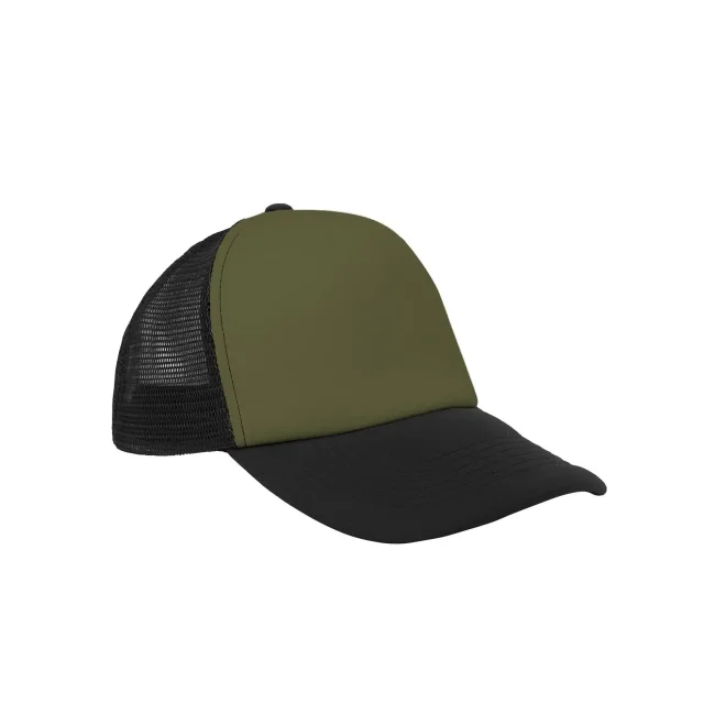 Cappellino Trucker realizzato in 100% poliestere, progettato con una struttura robusta a 5 pannelli. La visiera resistente offre comfort e stile, mentre i pannelli laterali e posteriori in mesh garantiscono una traspirabilità ottimale. Chiusura posteriore regolabile in PVC per una vestibilità personalizzata.