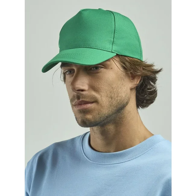Cappellino da baseball strutturato a 5 pannelli, realizzato in 100% poliestere twill riciclato certificato. Presenta cuciture in tinta, visiera curva e 4 occhielli per una ventilazione ottimale. Un accessorio pratico e sostenibile per ogni outfit.