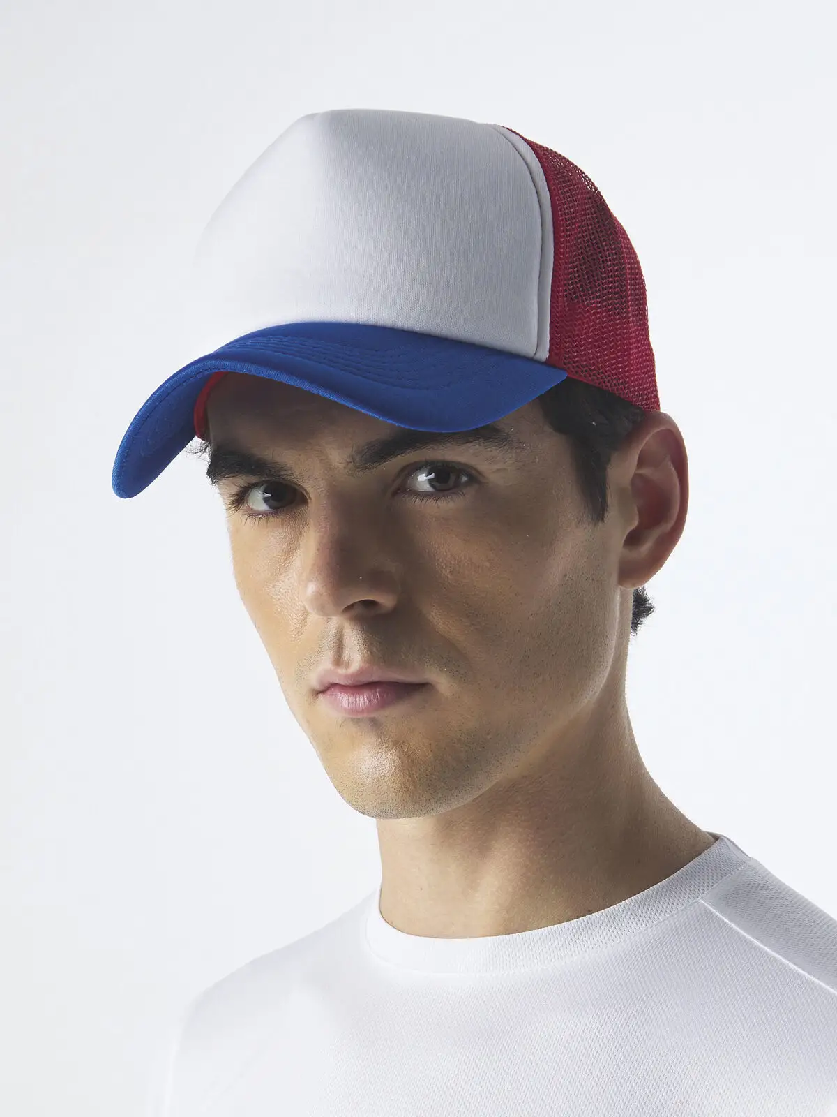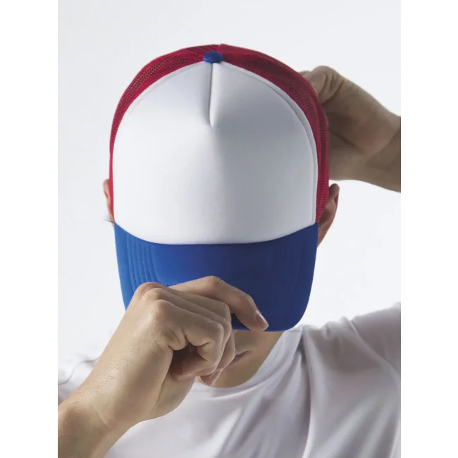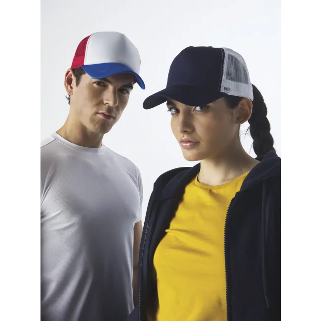 100% poliestere. Cappellino trucker con una struttura robusta a 5 pannelli. La visiera è realizzata in poliestere resistente, mentre il pannello frontale imbottito offre comfort e stile. I pannelli laterali e posteriori in mesh garantiscono una traspirabilità ottimale. La chiusura posteriore con cinturino regolabile in PVC assicura una vestibilità personalizzata. Disponibile in taglia unica.