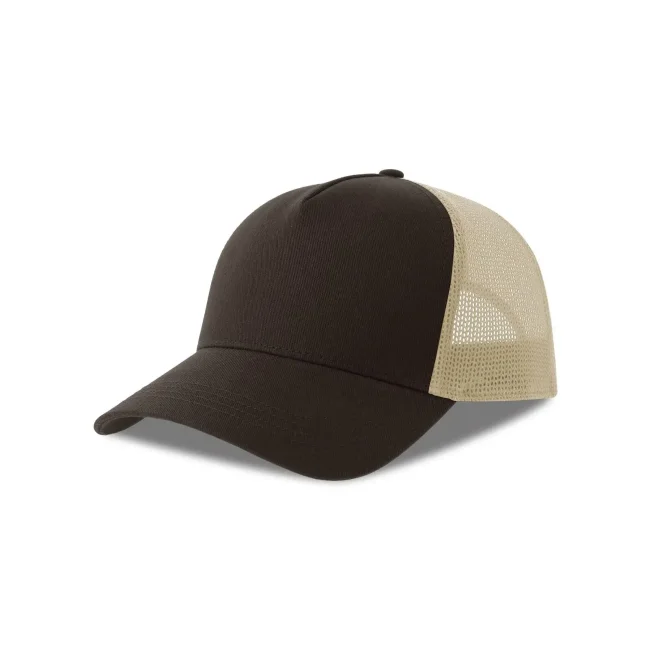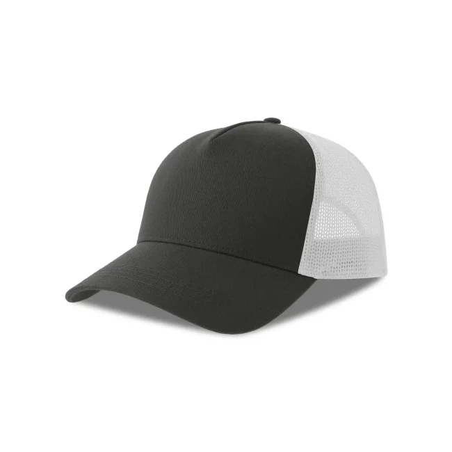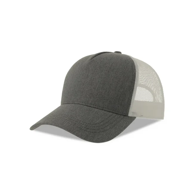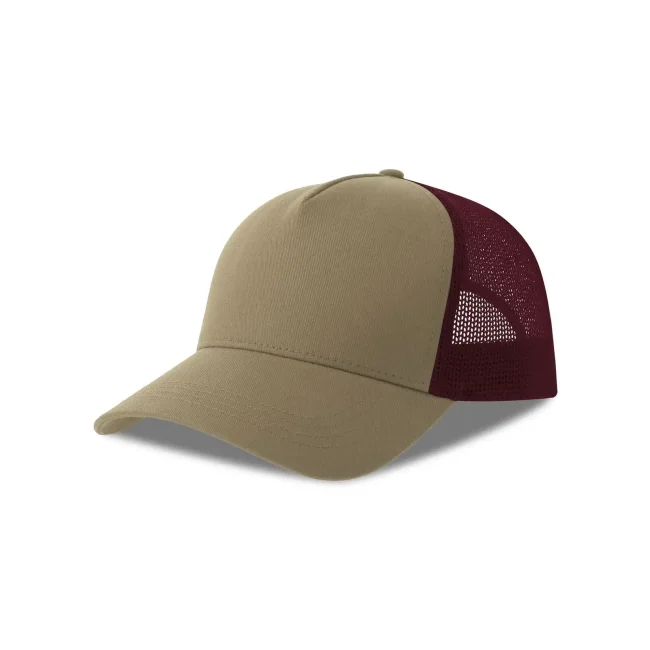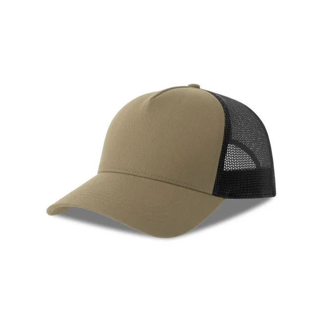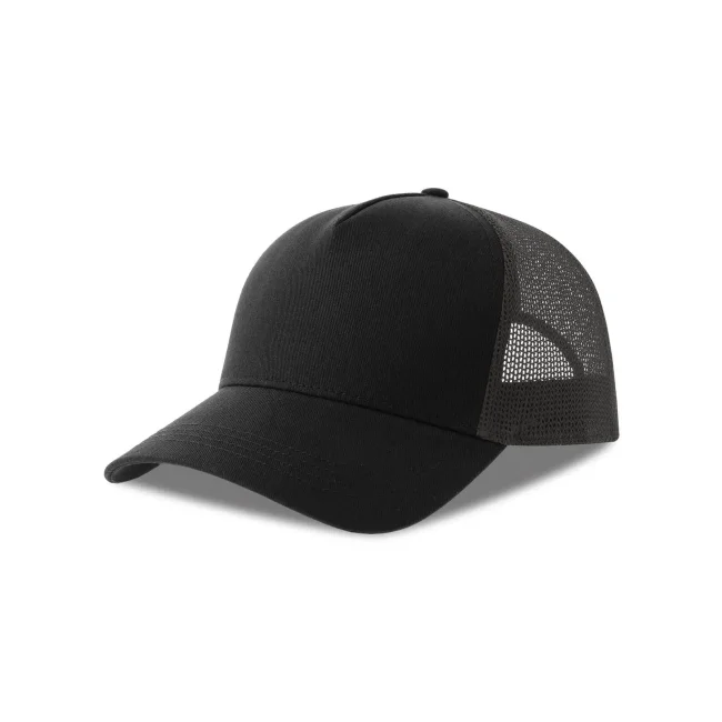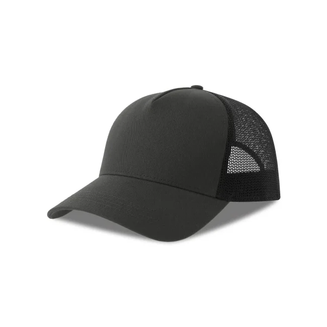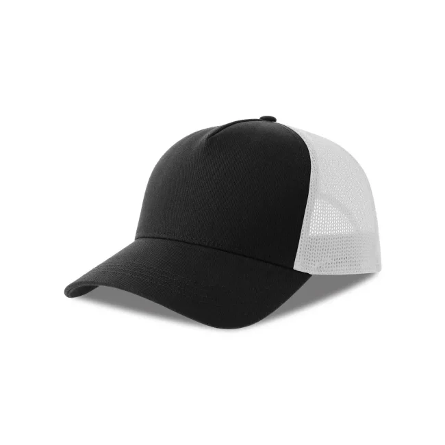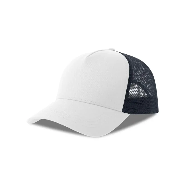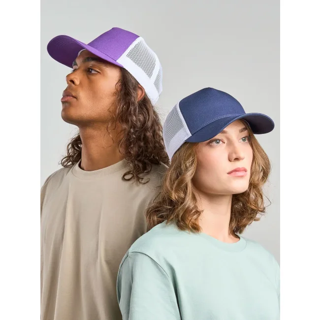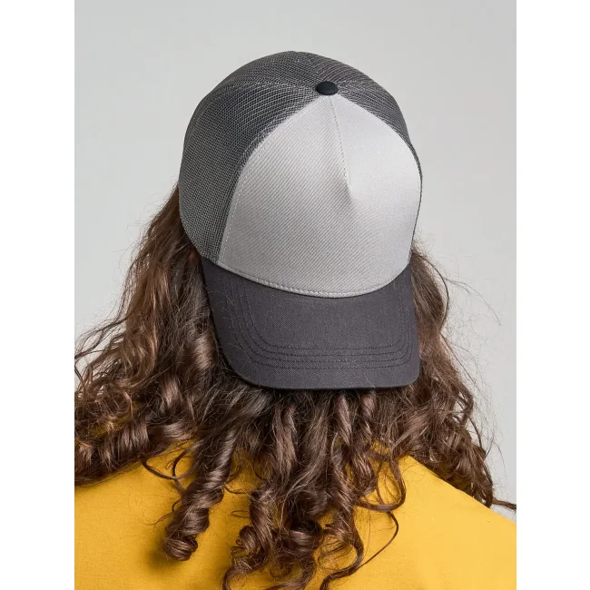 Cappello a 5 pannelli realizzato in tela di cotone organico e poliestere riciclato, con un pannello frontale strutturato e chiusura snap-back. Questo accessorio combina comfort e sostenibilità, rendendolo una scelta ideale per chi cerca un prodotto ecosostenibile.