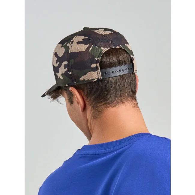 Cappello a 6 pannelli realizzato in poliestere riciclato twill, dotato di mid visor e chiusura snapback in PVC. Presenta un'etichetta removibile per un look pulito e moderno.