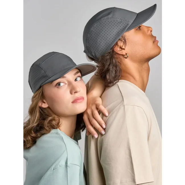 Cappello Maui realizzato in 100% poliestere riciclato textile-to-textile, progettato per essere leggero e traspirante. Traforato al laser, offre un'ottima ventilazione e un tessuto moisture-wicking che assorbe l'umidità per un'asciugatura rapida. Un accessorio ideale per chi cerca comfort e sostenibilità.