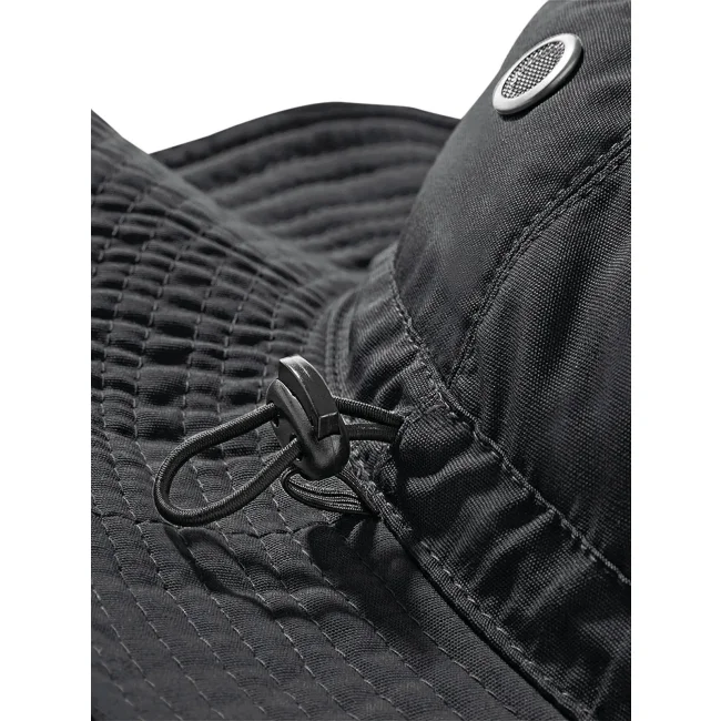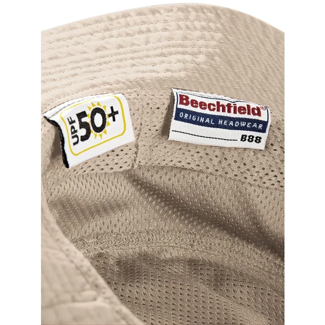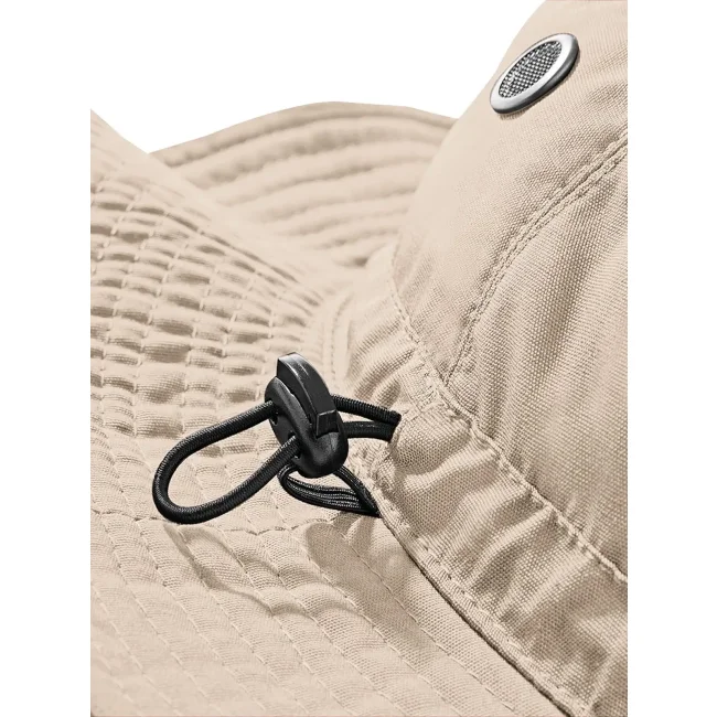 Cappello Cargo realizzato in un mix di 65% poliestere e 35% cotone, progettato per offrire protezione solare UPF 50+. Dotato di parasudore in mesh e cordino elasticizzato con stopper per una vestibilità personalizzata. Taglia unica con etichetta removibile per un facile rebranding.