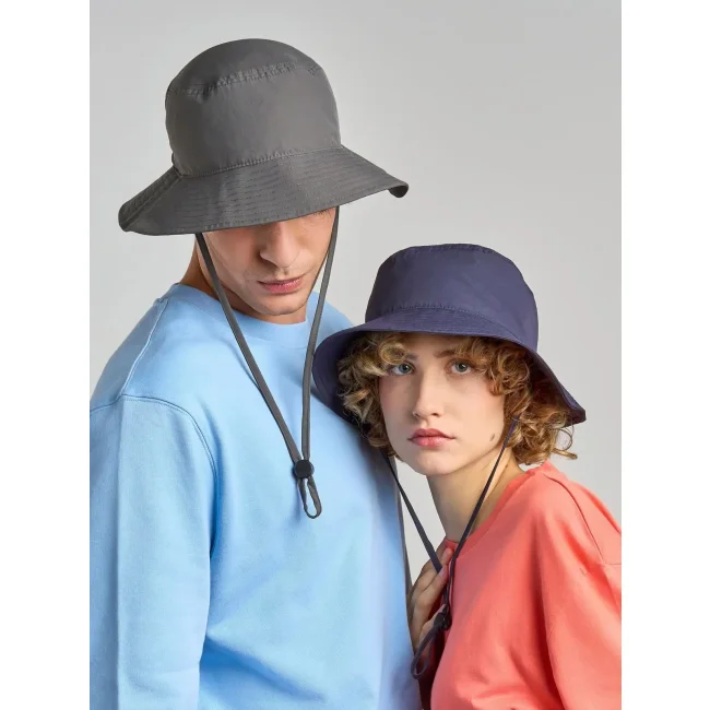 Cappello alla pescatora realizzato in 100% nylon riciclato, progettato per garantire impermeabilità e comfort. La coulisse regolabile permette di adattare la vestibilità, rendendolo una scelta pratica per diverse situazioni. Questo accessorio è una soluzione versatile per chi cerca un prodotto ecosostenibile.