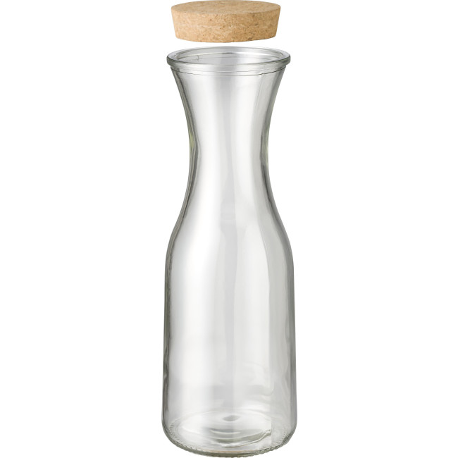 Caraffa in vetro riciclato, capacità 1.000 ml, coperchio in sughero, adatto per bevande fredde, confezionata singolarmente in una scatola di carta kraft