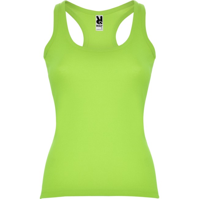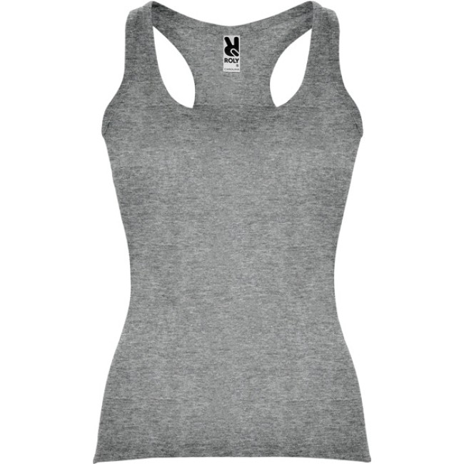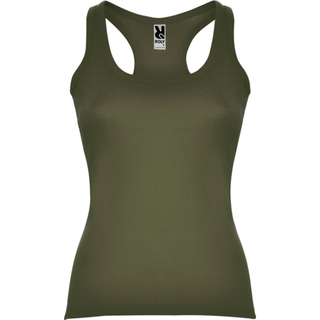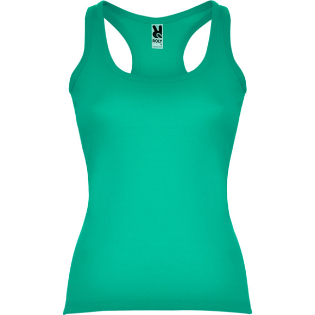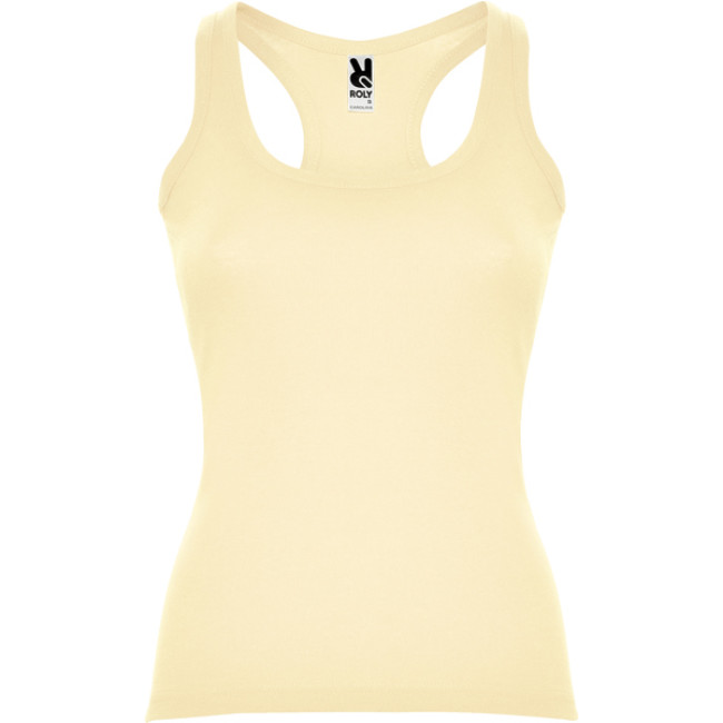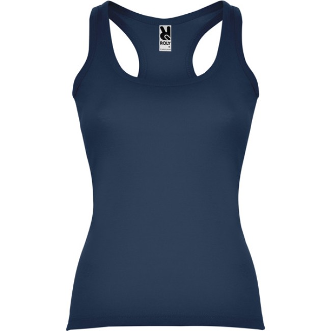 Canotta aderente. Giromanica e scollatura orlata, Spalline sul retro stile vogatore. Cuciture laterali.