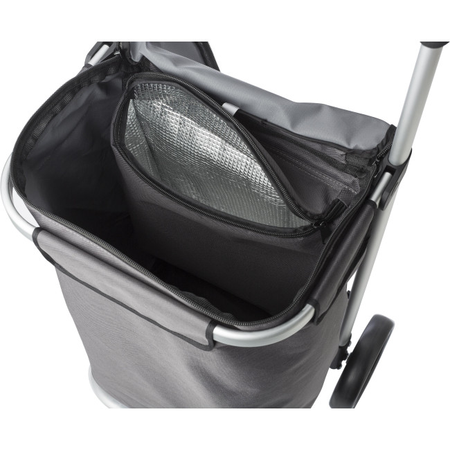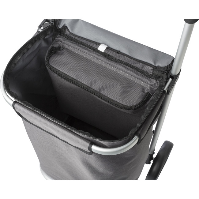 Carrello shopping pieghevole, linea Oxford, scomparto con chiusura lampo, telaio con impugnatura tonda in alluminio e presa in EVA, in poliestere 320-330 gr/m²