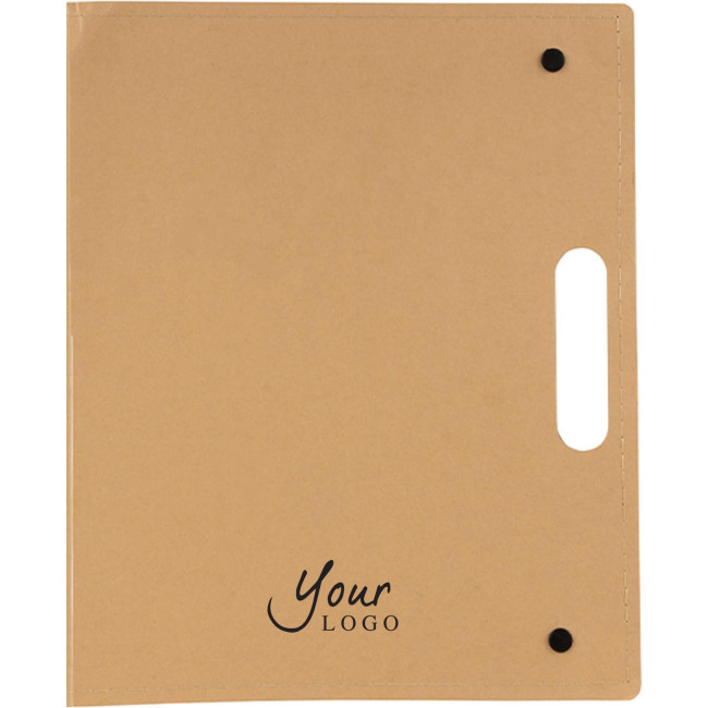 Cartella portadocumenti in cartone, block-notes con 20 pagine a righe, memo stick in vari colori, penna in cartone con corpo e clip in cartone, refill nero