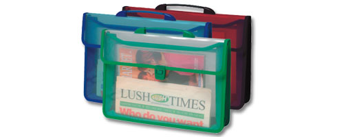 Cartella pvc trasparente colore rosso/nero 3 soffietti f.to 38.5x26.5x7