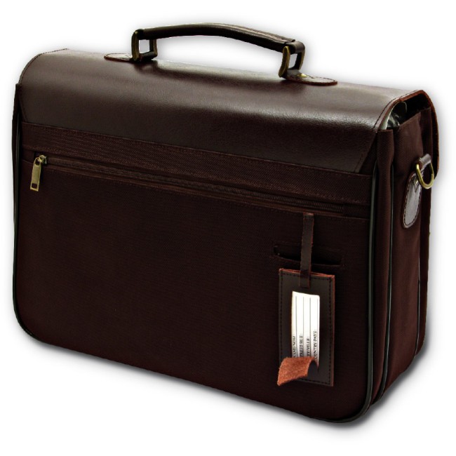 Cartella wrc in pelle color marrone e nylon 1680d particolari metallo color ottone antichizzato confezione in polybag