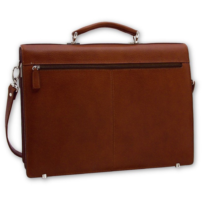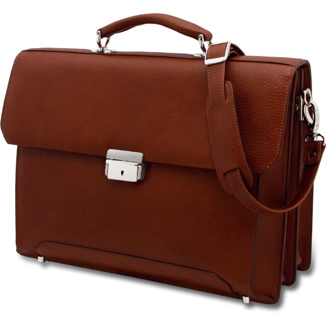 Cartella portadocumenti vera pelle cognac con tracolla particolari metallo cromato