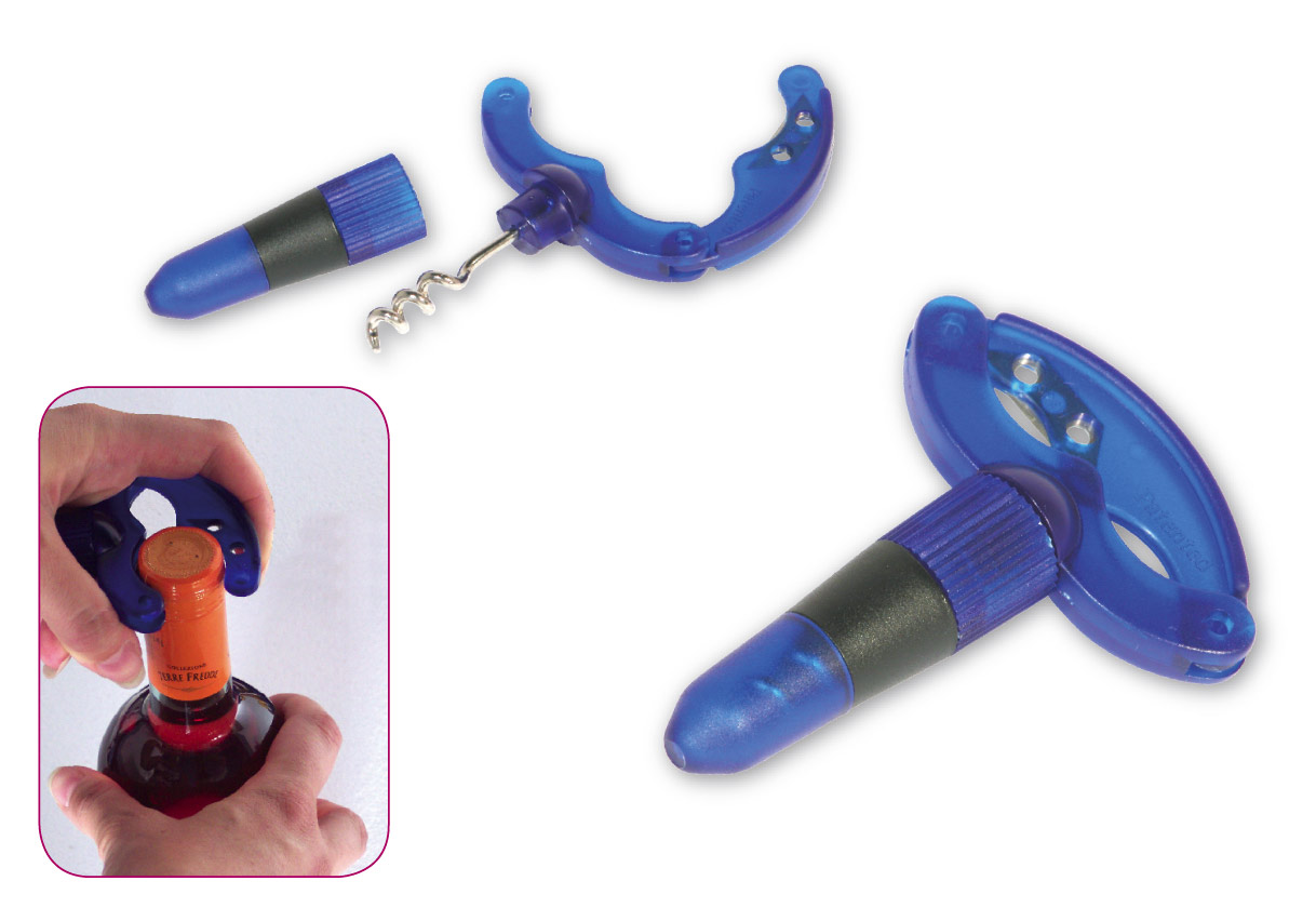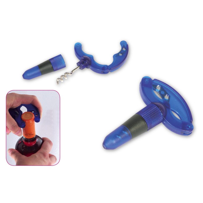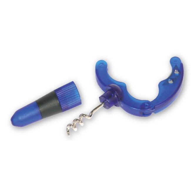 Levacapsule con cavatappi in plastica satinata blu.