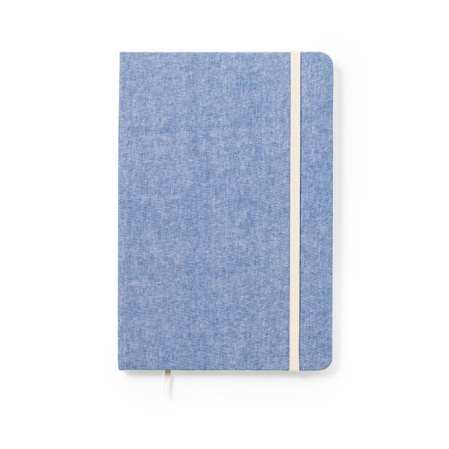 Block notes della linea natura fabbricato in cotone riciclato al. Con copertina rigida e rilegatura elastica a contrasto. All'interno 100 pagine lisce e segnalibro in tessuto. Disponibile in un'ampia gamma di colori, con etichetta cotone riciclato sul retro della copertina.Certificazione GRS (Global Recycled Standard), che garantisce l'origine riciclata del materiale utilizzato per la fabbricazione del prodotto.