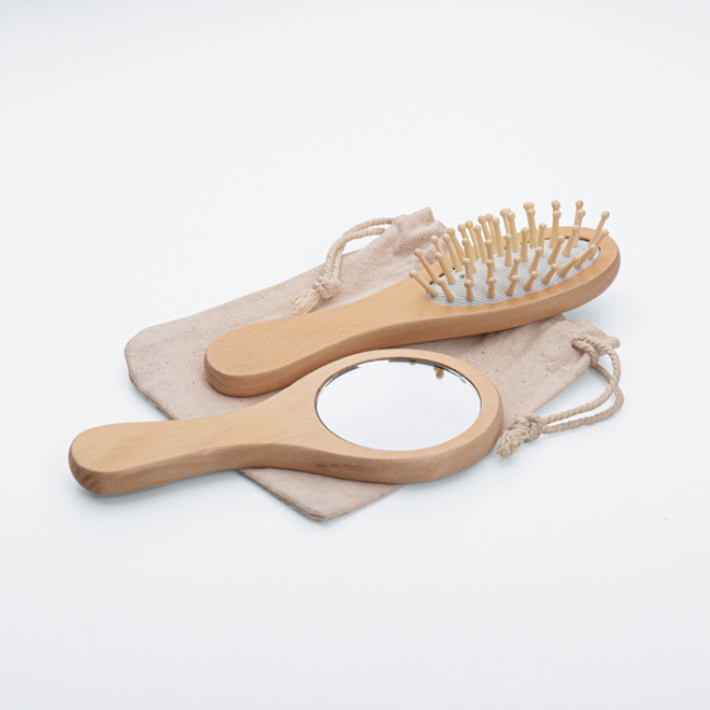 set spazzola + specchio da borsa mini spazzola con manico mini specchio con manico sacchetto in cotone incluso