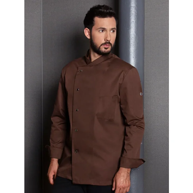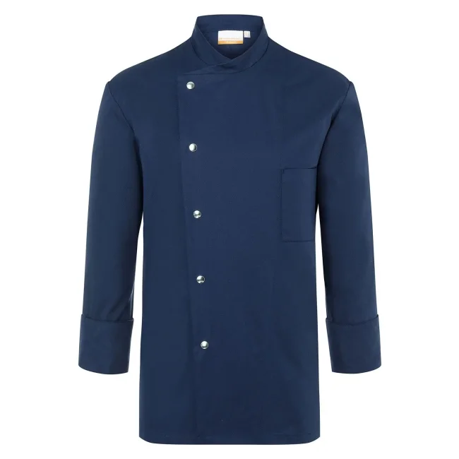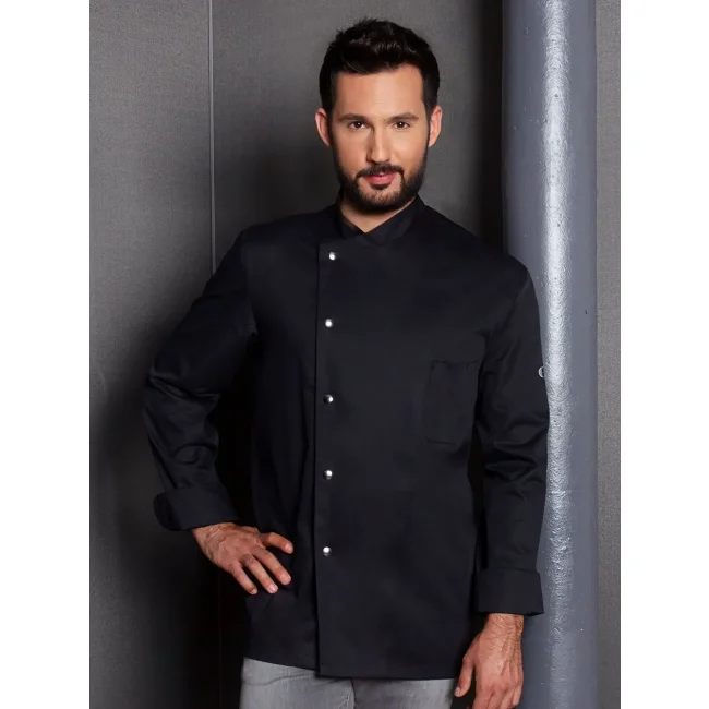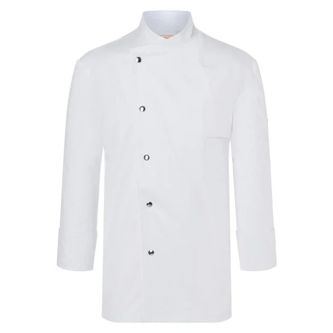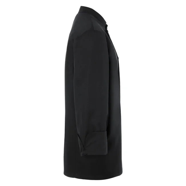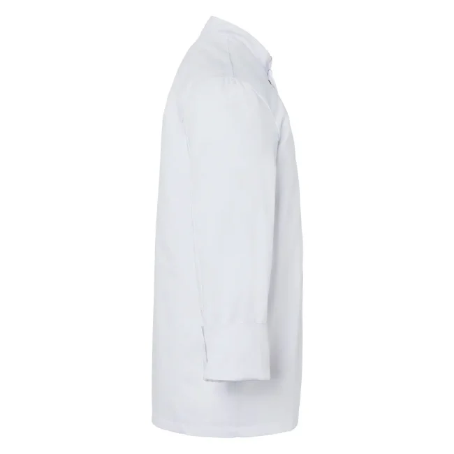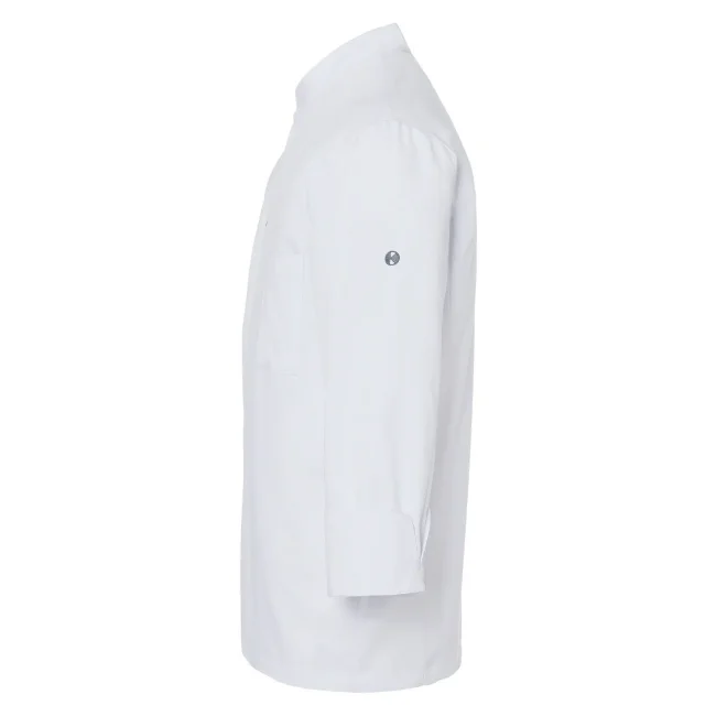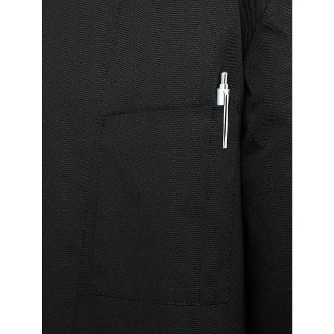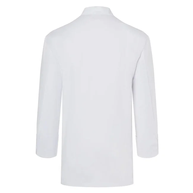65% poliestere, 35% cotone. Giacca da Chef dal tessuto rifinito e irrestringibile, cuciture vienna sul retro, maniche con fessura, taschino al petto, compartimento con spazio per penna. Adatta per lavaggi industriali. Lavabile fino a 95°.