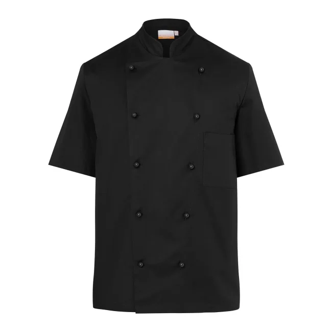 100% cotone. Giacca da Cuoco Lennert, 210 g/m², tessuto altamente rifinito, irrestringibile, non stinge. Giacca da cuoco vestibilità regolare a doppio petto a 10 bottoni, cuciture sul retro, maniche corte, tasca sul petto a sinistra. Da comprare separatamente striscia articolo KKL4 + bottoni disponibili in diversi colori (vedi articoli correlati). Adatta per lavaggio industriale a 95°C. Taglie 44 - 66.
