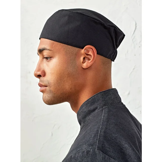 65% poliestere, 35% cotone. Cappellino piatto da chef, elasticizzato sul retro. Lavabile a 60°C.