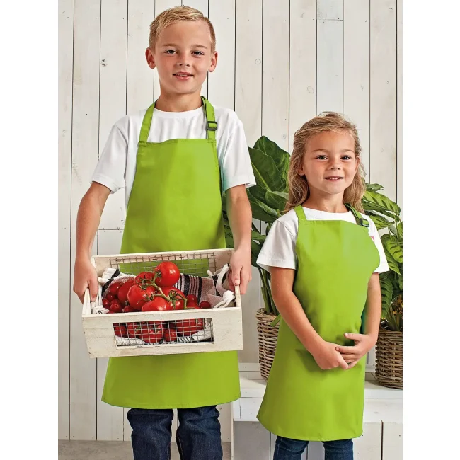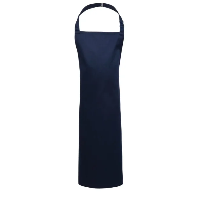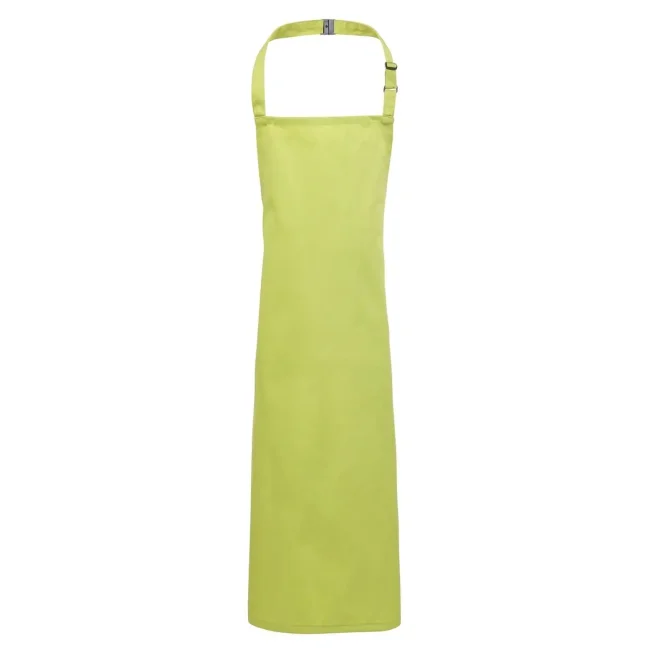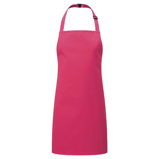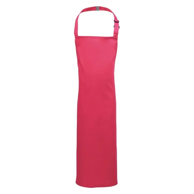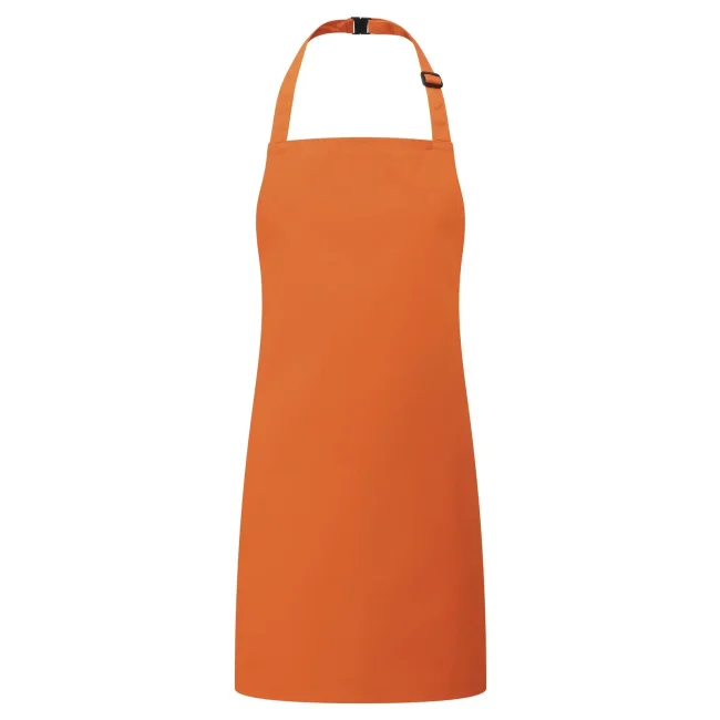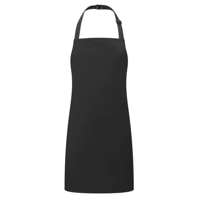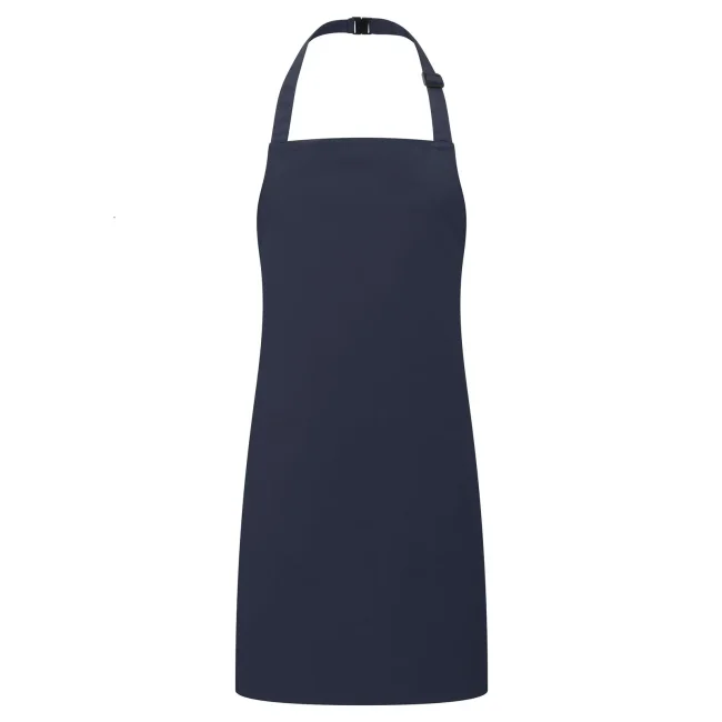 65% poliestere, 35% cotone twill. Grembiule con pettorina senza tasca, laccio collo regolabile con fibia. Lavabile in lavatrice domestica a 60° e 85° in lavatrice industriale.