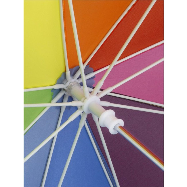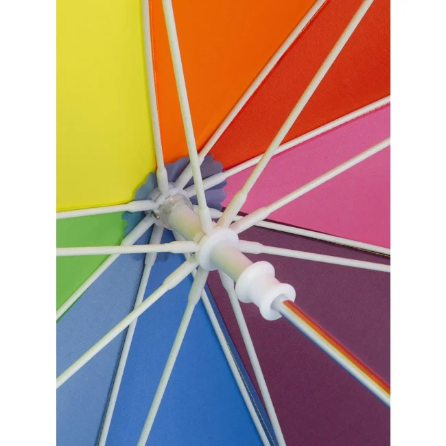 100% poliestere. Ombrello con apertura semplice e sicura grazie al dispositivo di sicurezza senza molla, sistema antivento per la massima flessibilità del telaio. Telaio con nervature in fibra di vetro, asta in acciaio cromato, punte punte arrotondate e allargate. Diametro: 73 cm, lunghezza da chiuso: 59,50 cm, 8 pannelli.