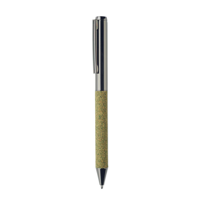 Set di notebook A5 con copertina rigida, 160 pagine di carta riciclata a righe (80 fogli/70 g/m²), penna a sfera in metallo e portachiavi. Dettaglio realizzato con 20% di fondi di tè, 30% di sughero, 50% di policotone. Dettaglio in metallo sul cinturino elastico. FSC®-certified | FSC MIX CREDIT, N7.1, FSC-C213206