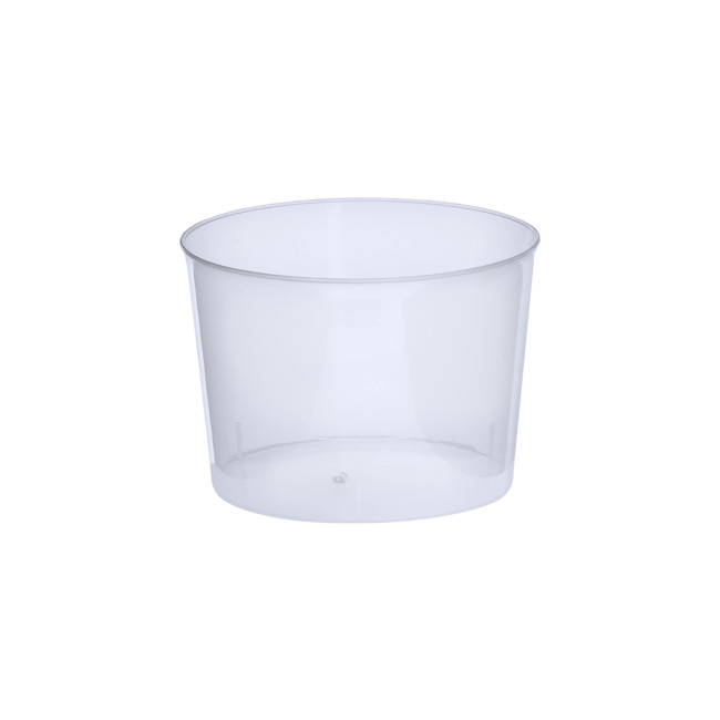 Bicchiere da 210 ml di capacità in materiale PP resistente e flessibile. Riutilizzabile con finitura trasparente.